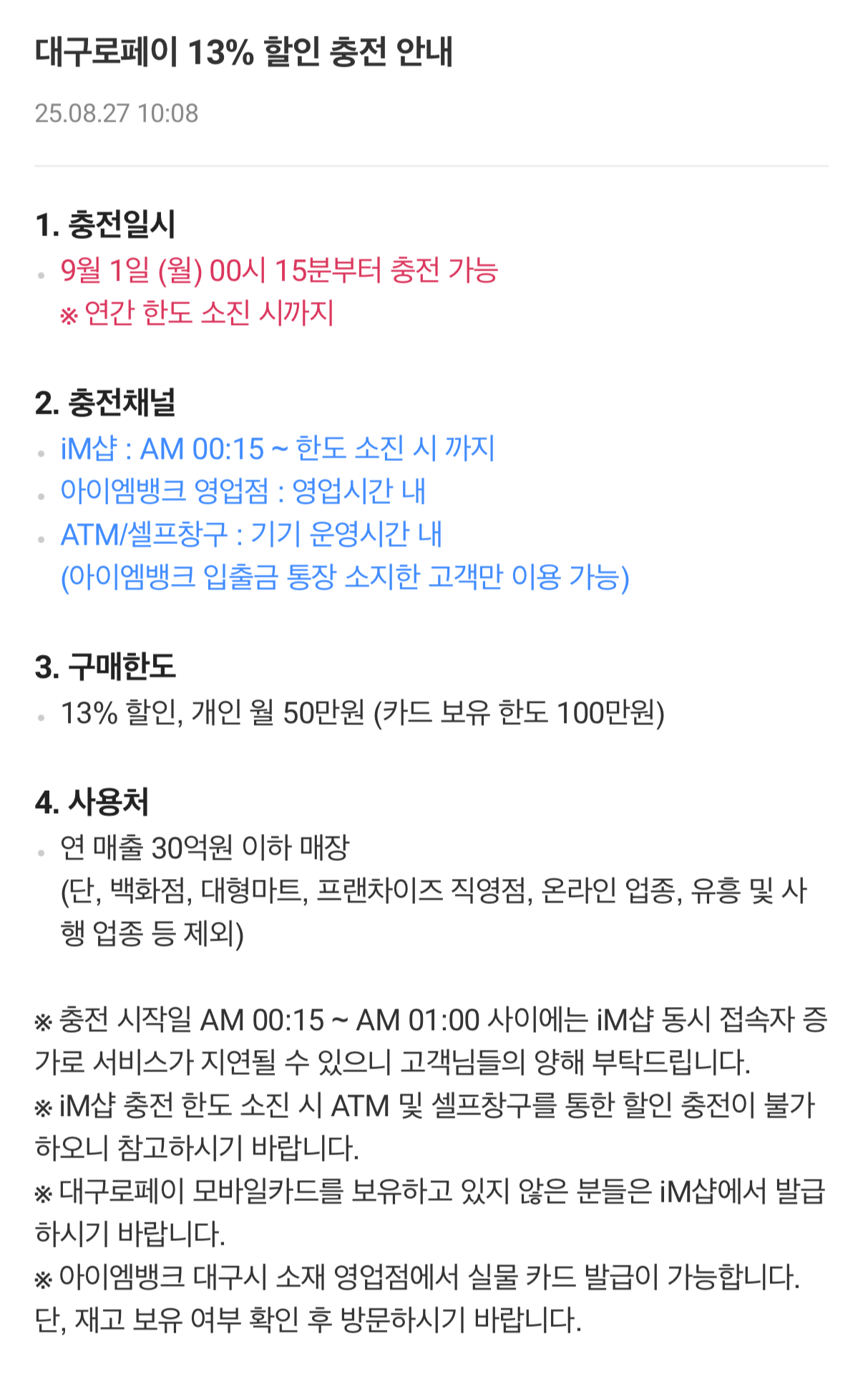 구매 방식은 간단합니다. 먼저 iM샵 앱을 실행해 본인 인증을 거친 후 원하는 금액을 선택해 결제하면 자동으로 충전이 완료됩니다. 충전된 금액은 지역 내 다양한 가맹점에서 현금처럼 사용할 수 있기 때문에 소비 접근성이 매우 높습니다.