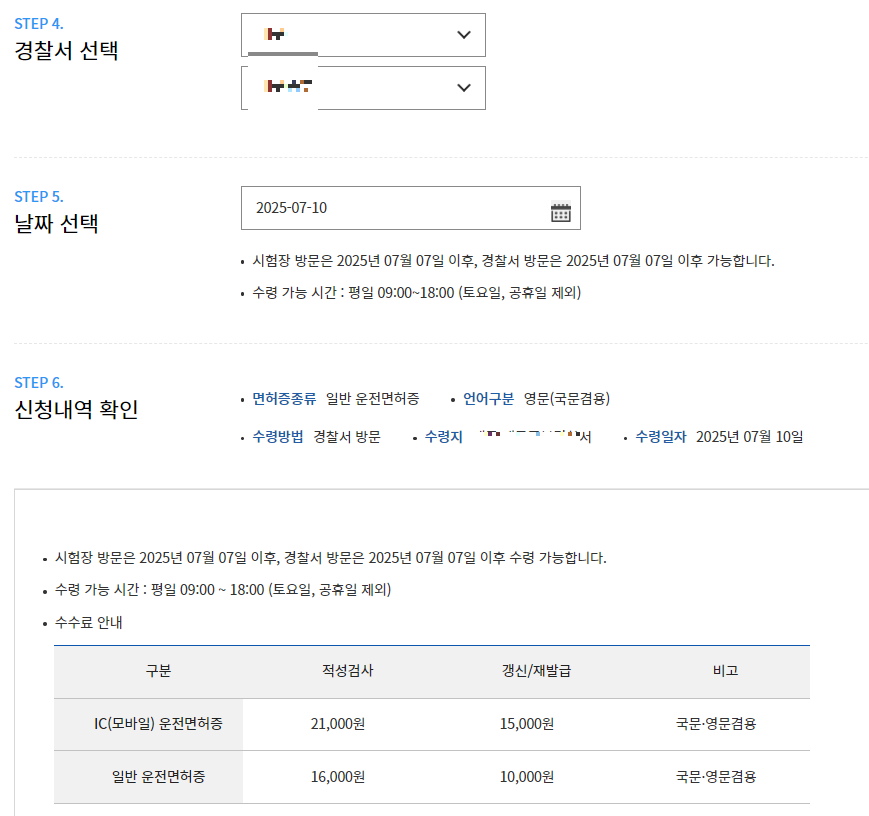 - 면허증 수령 방법 선택 (방문 수령 가능)