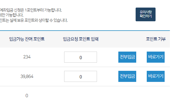 1포인트 = 1원, 최소 1포인트부터 신청 가능