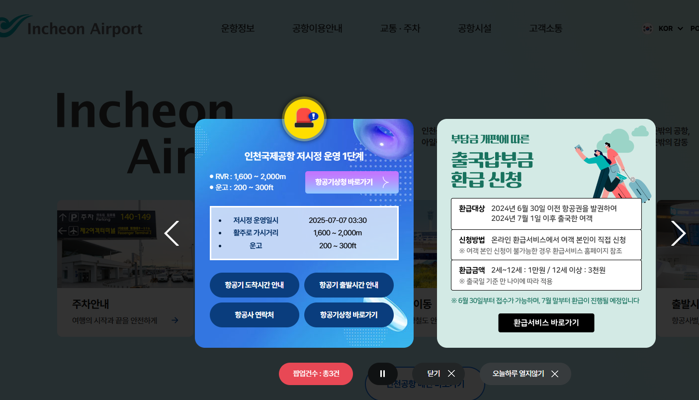 인천공항이나 김해공항 홈페이지 들어가면 가장 먼저 뜨는 배너에서도