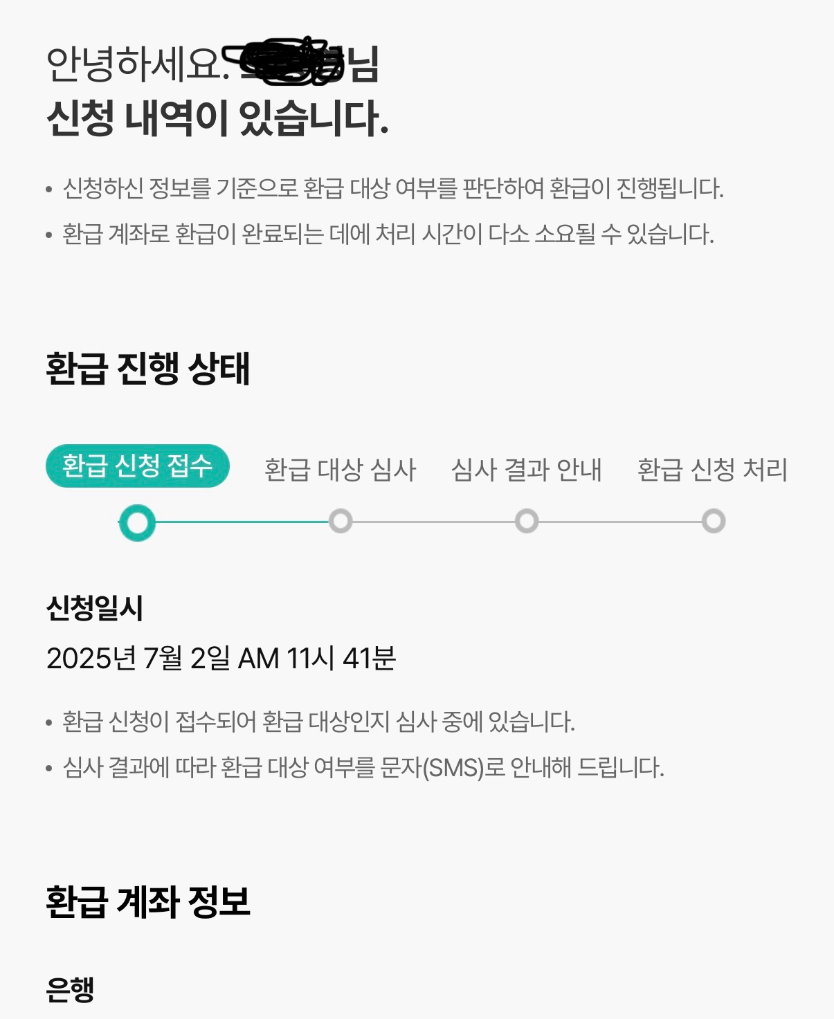 환급받을 계좌 정보 입력