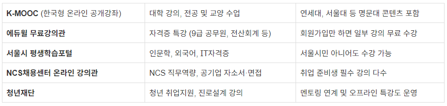 전국 청년 대상 무료 온라인 교육 플랫폼 모음