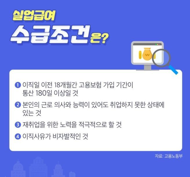 새로운 일자리를 찾는 기간 동안 생활을 지원해주는 제도입니다.