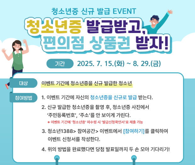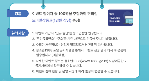 청소년증 발급하고 인증하면 편의점 상품권까지 받을 수 있는 기회라는 사실, 알고 계셨나요?