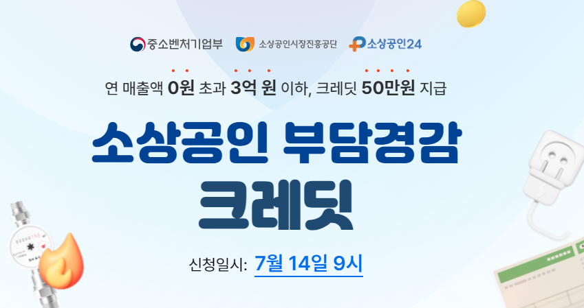 지금 바로 신청하세요, 소상공인 50만원 크레딧