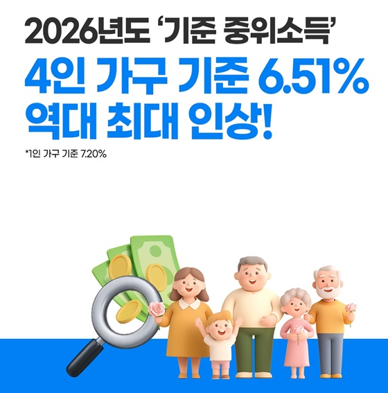 2026년, 기준 중위소득이 전년 대비 전반적으로 6~7% 인상되면서 복지제도의 주요 기준도 함께 달라졌습니다.