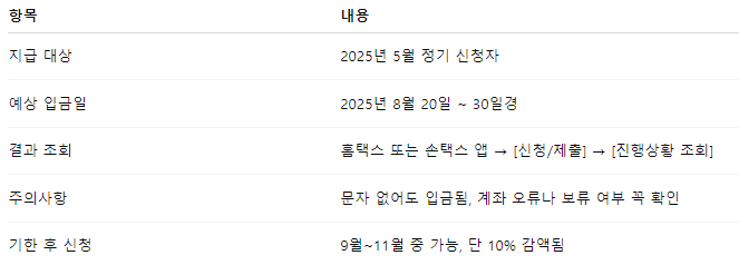 특히 8월 말~9월 초 사이에 대부분 지급이 마무리되므로, 추석 전 자금 계획을 세우는 데 도움이 될 것입니다.