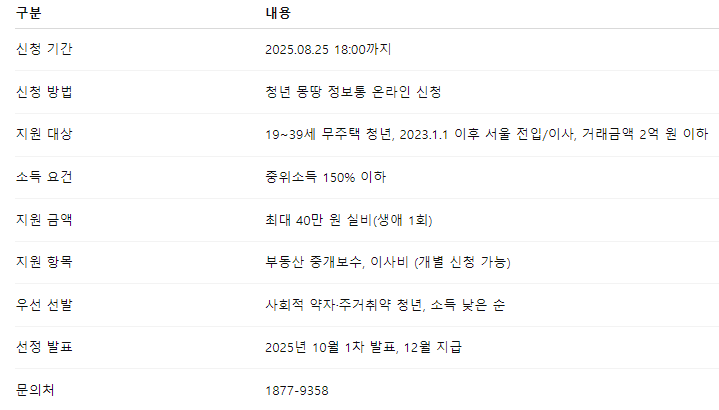2025년 서울시 청년 부동산 중개보수 및 이사비 지원사업은 주거비 부담 완화에 실질적인 도움이 되는 제도입니다.