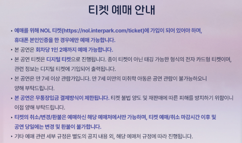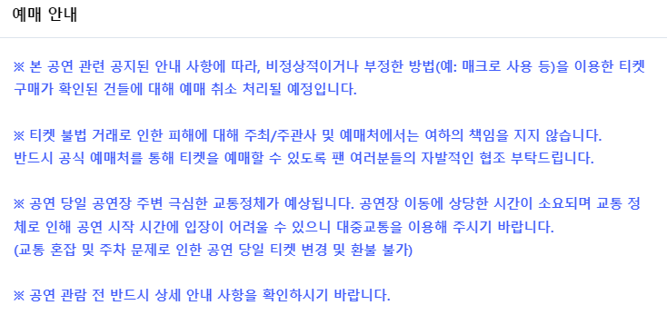 유의사항: 개인 간 양도, 중고 거래를 통한 티켓은 환불 및 입장 불가