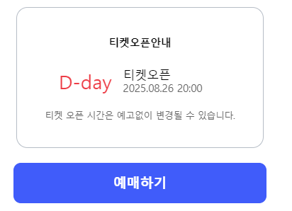 일반 티켓 오픈: 2025년 8월 26일(화) 오후 8시